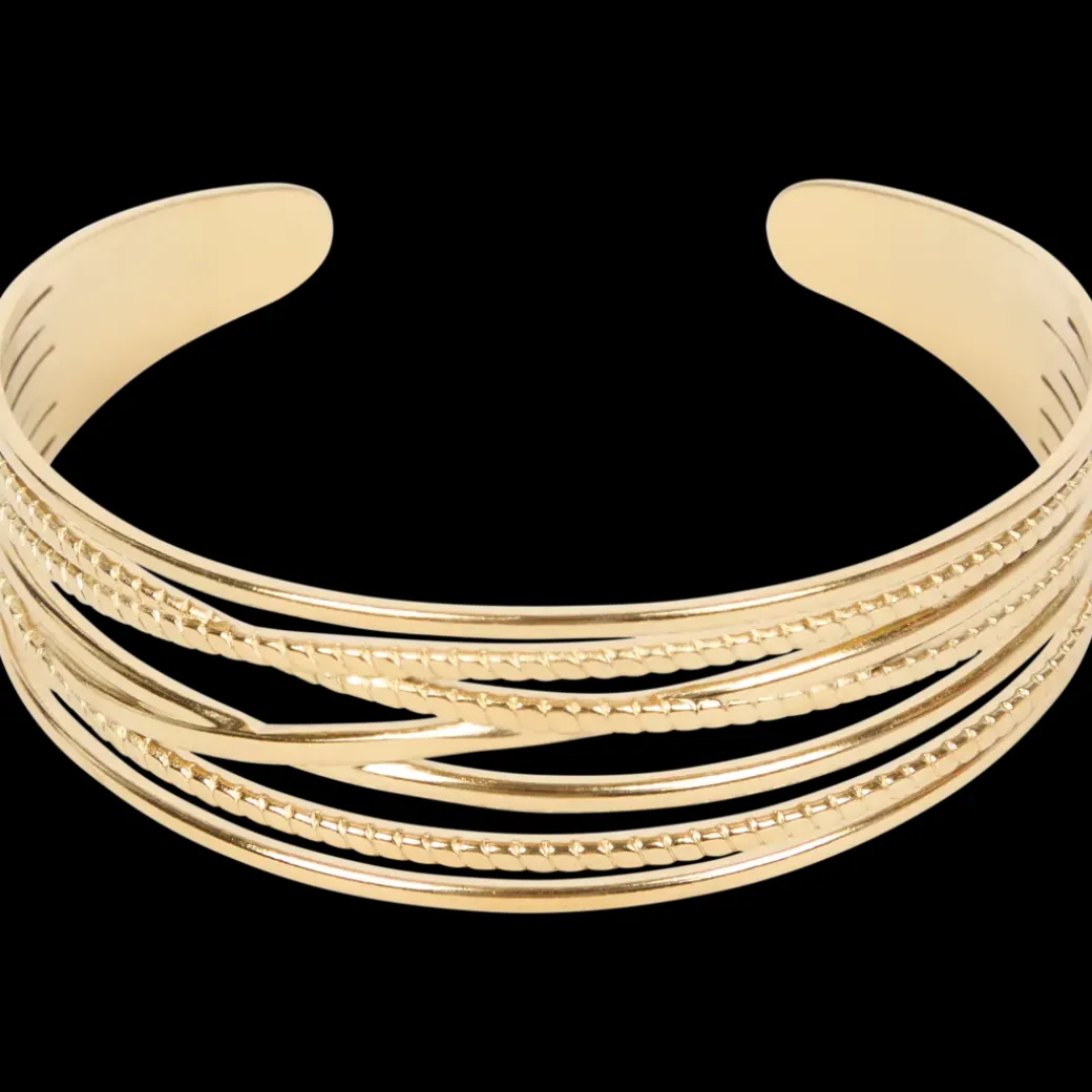 - De goudkleurige armbanden zijn verguld
