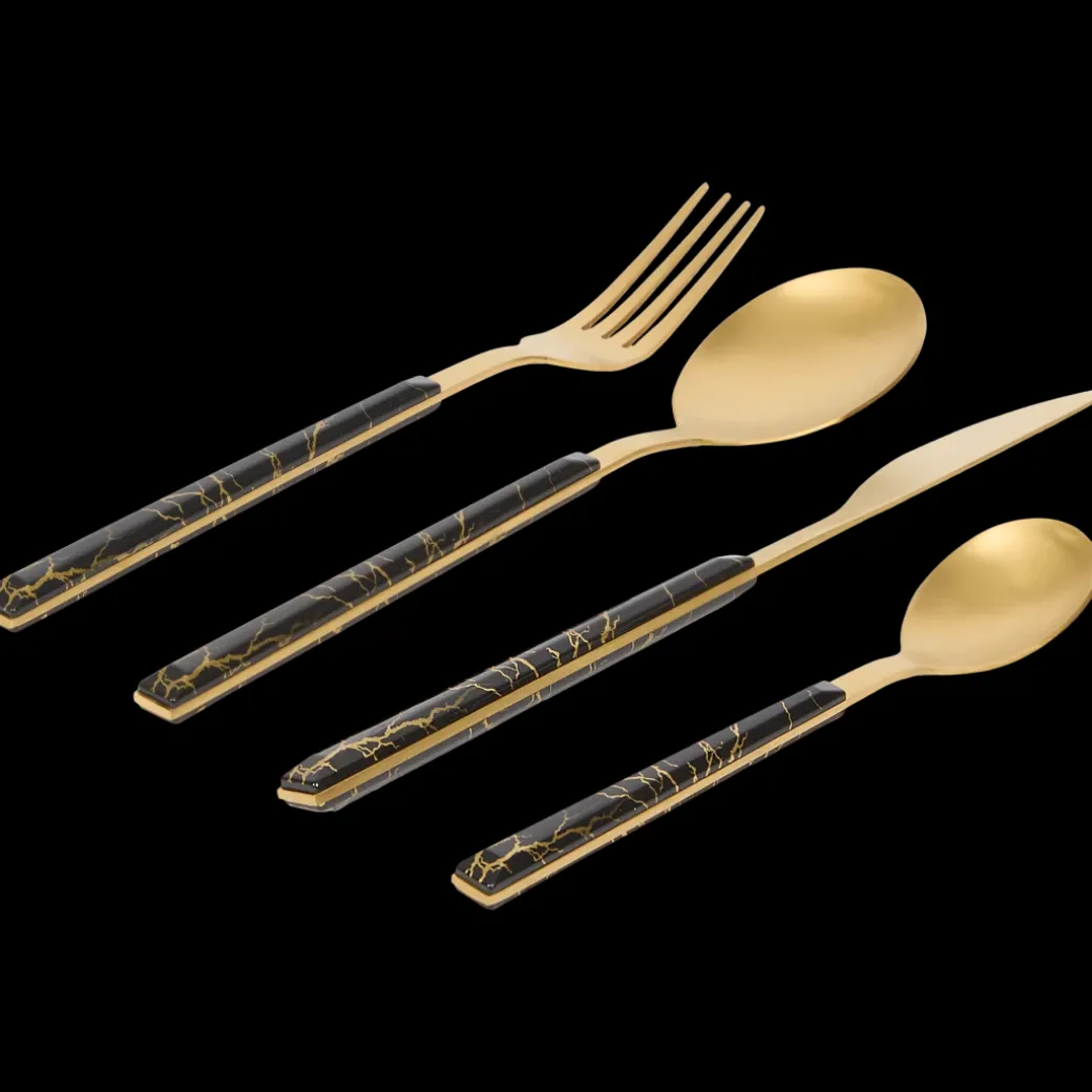 - 4 messen, 4 vorken, 4 lepels en 4 theelepels